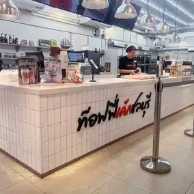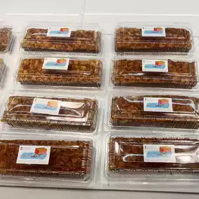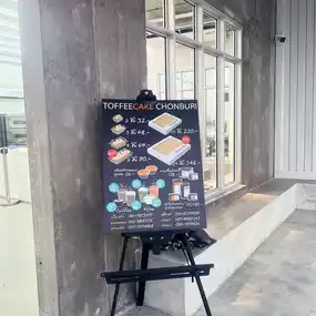 Today, we are taking our friends to visit Chonburi Province. Let's stop by for some delicious treats at Toffee Cake Chonburi, Bangsaen Branch. The shop is located at 100 Khao Lam Road, Ban Puek Subdistrict, Mueang Chonburi District, Chonburi Province. If you are visiting Chonburi, you must not miss this shop. It is a souvenir shop guaranteed to delight the recipient. The cake is soft, perfectly sweet, and very fragrant. It is cut into bite-sized pieces, just right for eating. They bake fresh cakes every day, and the prices are very reasonable.