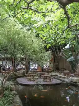 The cafe area has an old and new building zone.