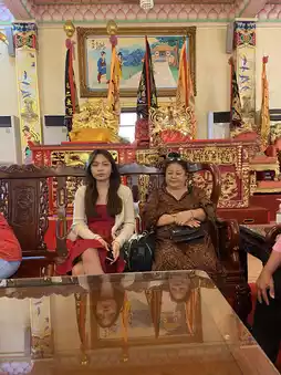When you walk into the shrine, you will find an atmosphere full of peace and sacredness. The interior decoration has beautiful patterns, along with statues and symbols that reflect beliefs and traditions, especially the decorations with bright flags and flowers.
