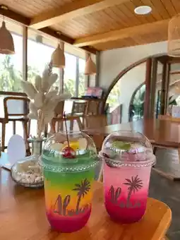 Aloha Beach Cafe 🩵: Bangsaen cafe decorated in a cool beach sand style. Serves food, drinks, fresh coffee and homemade bakery. And ice cream too. Everything is delicious. Coconut cake is so awesome!