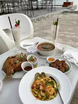 The food is a general menu, mostly seafood, not expensive, medium taste, considered okay. Drinks are served like Tha Chang in Chiang Mai. Anyone who likes to get drunk must try it. Especially at night, the lights are very bright.