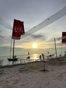 Expanded from the original shop in Chiang Mai to become a very chill restaurant with a very beautiful view in Bangsaen. Especially in the evening, the sun is about to set, the sky will turn orange with a cool breeze blowing from the beach. Very romantic, the atmosphere is very good!
