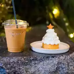 I tried their Apple Tart and Thai-style latte. The tart was beautifully decorated for the festive season, with whipped cream shaped like a Christmas tree—so adorable! The tart itself was crumbly and crispy, while the whipped cream was pleasantly light and not overly sweet. The apples, served in large, candied halves, were soft yet retained a nice chewable texture. They were perfectly sweet and juicy, complementing the tart wonderfully. Overall, it was absolutely delicious.