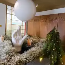 Ayatana Cafe opened late last year in the Charoenkrung area, and I recently discovered they have another branch in Chonburi province. The cafe is set in a charming old building, with a unique sculpture of a hand releasing a large balloon—symbolizing freedom and letting go.