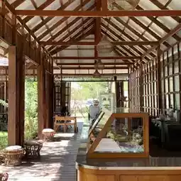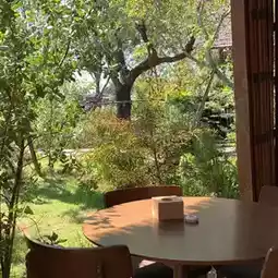There are many seats to choose from, both indoor and outdoor. We like the seats near the fish pond. We can feed the fish. There are also turtles in the pond.