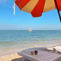 A small seaside cafe on a private beach🏝️ with great vibes. The morning light is great. Especially during this time, there is a cool breeze. It's fun to sit and relax.