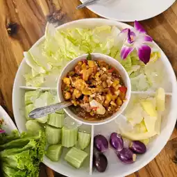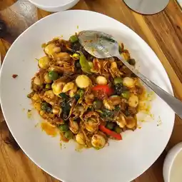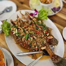 Je Mien Restaurant, located on Sukhumvit Road, not far from Nong Mon Market, is an original restaurant that has been in business for over 40 years. It has evolved from a simple made-to-order restaurant into a seafood restaurant.