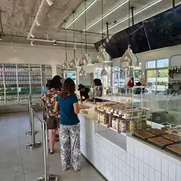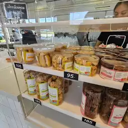 Toffee Cake Chonburi (Bangsaen Branch) is a famous cafe and souvenir shop in Chonburi. There are many branches in the province. There are many snacks to choose from. But the most popular one that I saw a lot of people buying is the toffee cake. The smell is so fragrant. You can see every step, from baking to packing for sale in front of the shop. Freshly baked cakes are brought to be sold in front of the shop. The fragrant smell wafts throughout the coffee shop. It has become a charm and attraction for tourists to stop by and try the toffee cake. It has become a word-of-mouth trend of deliciousness. People in the area and people in Bangkok have bought it as a gift. The production system, shop design, and location have been developed to make it easier for customers to access the Toffee Cake Chonburi shop. The price is affordable. This is one product that when you come to Chonburi, you must think of this shop only.