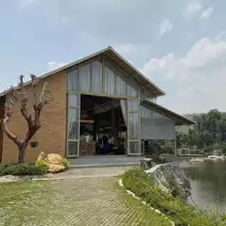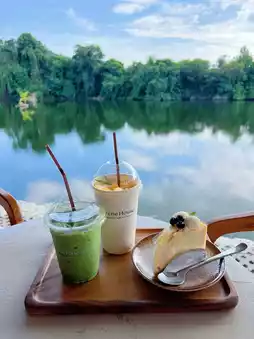 Chonburi cafe The shop is located amidst mountains and a private lake. It feels like being in Khao Yai. The area is spacious, shady, and natural. There are both indoor and outdoor zones. There are many photo zones. If you go during the holidays, there will be quite a lot of people.