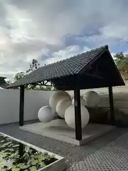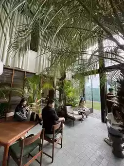 The atmosphere is peaceful, shady, with many photo spots and plenty of seats to accommodate the people who come by.