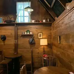 Homey style, small and cute, the shop is a warm wooden cabin