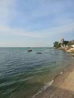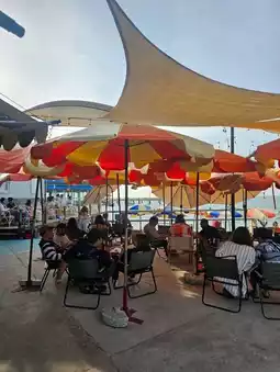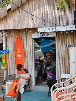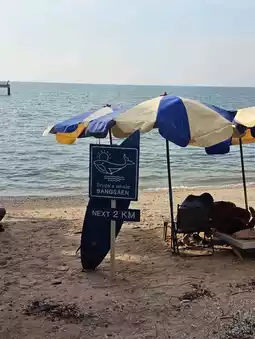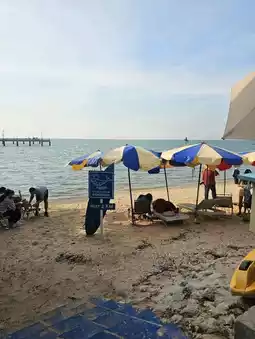 This is a small cafe by the sea on a private beach. The vibes are great. The highlight of this place is a small island with flags. The seats here are outdoor. The wind is cool and comfortable. Plus, this place is pet-friendly, which pet lovers will definitely love.
