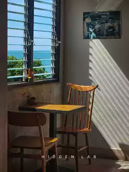 A Chonburi cafe with lots of photo spots, Hidden Lab is a cafe that caters to those who love taking photos by the sea and cool street style. Let me tell you that there are lots of photo spots and many zones, whether it's a new building zone decorated in a modern style with a rooftop for viewing the view or an old building zone that caters to those who love coolness and taking photos. If you go, I recommend capturing every atmosphere because the cafe has many zones: indoor with cool air conditioning and outdoor with a sea breeze. Most importantly, if you go in the evening to watch the sunset, I must say that it's awesome. The desserts and drinks are very good, I must say.