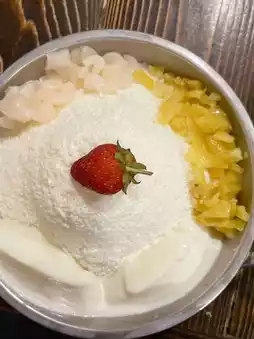 A small and cute bingsu shop in Bangsaen that is very delicious and tasty. The first time I ate here, I was hooked. I will definitely come back often. The shop has both an air-conditioned area and an outdoor area. You can sit and chill, catch the breeze and watch the teenagers from BU. 😍 The price is very friendly, cheap, you can order again without worrying about your wallet. The shop is before reaching Park In Market, opposite Mister Zab. Let's go ❤️