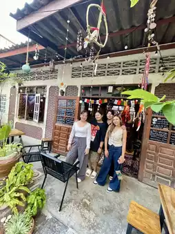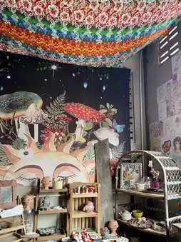 A small, hidden cafe with a hippie vibe.