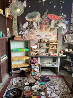 The shop offers free Wi-Fi. Come chill, work, read, and more! 🏡🌺🪬❣️🌞☮️🌴