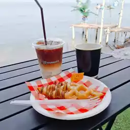 A cafe in Bangsaen, Sriracha, with a great atmosphere by the sea. I must say that this shop is very chill. Especially come in the evening to watch the sunset. Whether you want to have dinner, eat dessert or drink, the shop has everything you need in one place. In the evening, there is live music, easy listening, you can sit for a long time. #OneDayTripPlan #ChonburiTourism #CafeReview