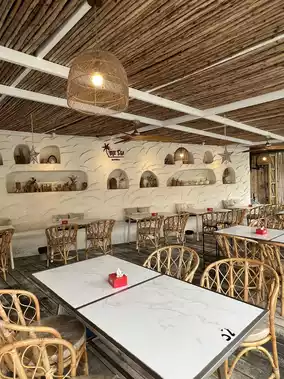 On our trip to Pattaya and Bang Saen, we passed through Ang Sila on the way back and decided to stop for lunch. We highly recommend The Sea Garden, a delightful seaside restaurant in Ang Sila. The atmosphere is wonderful, with a charming decor in white and cream tones that feels clean and refreshing.
