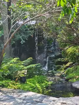 The seating options include both indoor and outdoor areas, with a serene waterfall garden complete with fish, creating a relaxing atmosphere. Every corner of the café is perfect for capturing beautiful photos. As for the menu, there’s a wide variety of beverages and baked goods to choose from, all of which are not only visually appealing but also delicious.