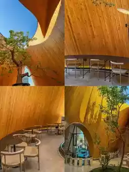 This is a very beautiful and unique cafe. Good coffee, delicious food, the atmosphere inside the shop is airy and comfortable. There is a Slow bar zone. Coffee lovers must not miss it. We think that this place has many beautiful photo spots. There are both indoor and outdoor zones. The building is shaped like a wave, curved to match the baobab and olive trees that are over 100 years old. There is also a "GARDEN ART SPACE" zone. 🌳 The air is cool and comfortable. There is a waterfall and a small stream flowing through, giving a very refreshing feeling. Sitting and sipping delicious coffee is very suitable. ☕️