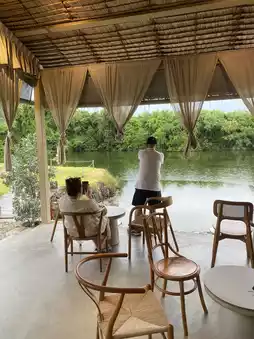 • The atmosphere is shady, natural, but also has the beauty of a modern cafe.