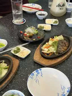 - Teppanyaki with rich flavors served alongside fresh vegetables