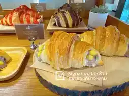 Khao Lam Croissant, it was very delicious. Sob. Prepare your stomach. There are both black sticky rice and white sticky rice. You can choose. There are also other types of croissants and many other desserts. You can find everything in one place, both their food and desserts. There is also ice cream. 🧁