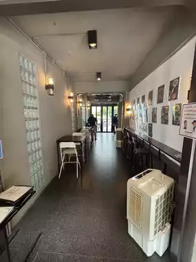 Imagine an old building, peeling walls, exposed concrete floors, old steel poles that are not retouched to look new, but have become uniquely cool, like a shop that doesn’t care who likes it, just opens the door and says, “Come in if you like raw, quiet, and sincere.”
