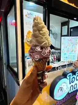 This shop is a small booth located right on the beach. They serve fried ice cream by the bell. When they serve you, you ring the bell once. This shop has a unique identity. If you want free ice cream, you can, but you have to toss a coin into the jar in the middle. ((But we couldn't 😆))