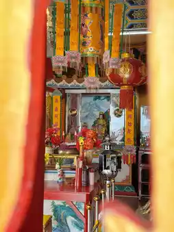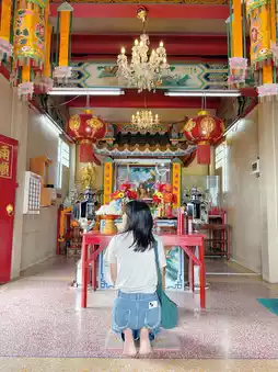 We walked along the seaside for about 200 meters and arrived. Even though it's right on the beach, the shrine's colors are vibrant and well-maintained. Inside, there's a small shrine with a statue of the goddess inside. It looks ancient, sacred, and simple.