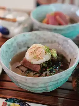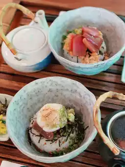 ✨ A highlight is the Ochazuke, or tea-topped rice. Choose from matcha, sencha, hojicha, or genmaicha green tea, and pair it with authentic Japanese toppings like grilled salmon, fried tofu, mentaiko, or tuna.