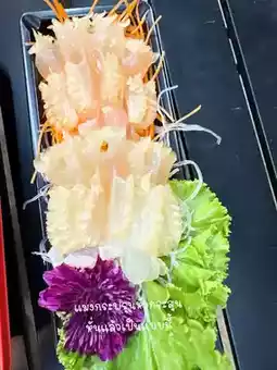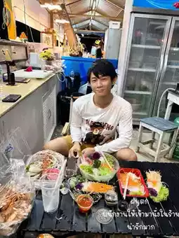 Chef Nook's Thai fish sashimi is highly acclaimed. Today, we tried it at the Bangsaen beachfront branch. Their main branch is on Khao Lam Road (the bigger one, with more variety). We were just passing by the beach that day and stopped by to eat there. Their fish is truly fresh! They even have live squid shots. If you're a fan of fish, give them a try. They have many different kinds of fish, but I can't remember them all! 😆 The names aren't all that familiar. The only familiar ones are the nam dok mai (water lily) and pla kud salak (salted fish), something like that. 👍