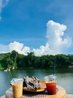 🫕 The cafe is located on the waterfront, with a lake on the side, creating a relaxing atmosphere. The open-air atmosphere is comfortable, but it doesn't feel hot. There's plenty of seating available, though if you come in the afternoon, it can get quite crowded. We recommend coming around 10:00 AM.