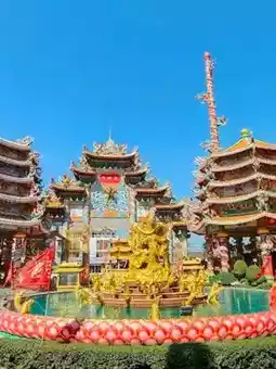 Grand and Beautiful Chinese Architecture: Upon arrival, you'll be amazed by the grandeur of the four-story shrine, decorated with 2,840 dragon statues and designs! The vibrant colors of the three main buildings and the Hall of Heaven and Earth make this a popular photo spot for visitors.
