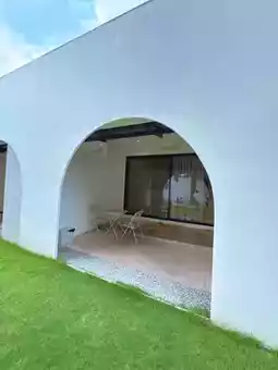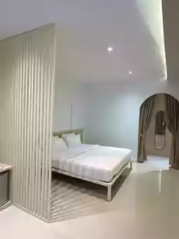 The hotel is minimalist, quiet, and has a great atmosphere. It feels like you're in a backyard garden. It's shady and offers privacy, perfect for a relaxing stay. The hotel features a white theme. There are four room types (Cozy, Standard, Superior, and Lux) and 11 rooms in total. If you're planning to stay here, we recommend booking in advance.