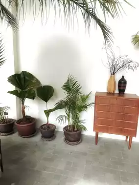 This cafe, decorated in brown and white, has a simple, natural feel. The shop has many photo spots, with a simple, minimalist, Muji-inspired tree-lined interior and simple wooden furniture. There's both an air-conditioned area and an outdoor area, so it's not too hot. If you want to take photos, head to the outdoor area to enjoy the cool breeze while sipping coffee and cake. It's a real treat!