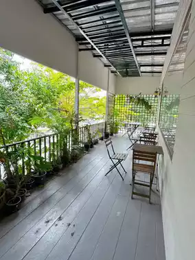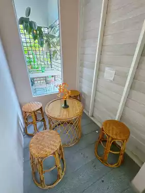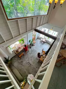This Bangsaen cafe in Chonburi has the best vibes. The shop is incredibly cute, with two floors, both outdoor and indoor, and plenty of photo spots. A single photo is never enough. Bring your camera memory card! The staff are friendly and can even ask you what kind of tea you like, as they have so many varieties. Today, I had the one in the middle in the photo. It was absolutely delicious! The flavor was so good, not too strong or bitter. I could have had several cups.