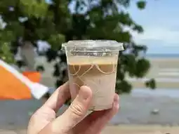 For those in Bangsaen who aren't sure where to go, we recommend this one. The cafe's theme is bright orange, and the atmosphere is pleasant by the sea. They offer coffee, desserts, and food. They're open from morning until evening.