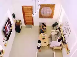 There's a seating area for watching movies, listening to music, and singing karaoke.