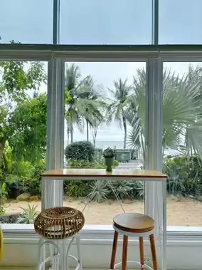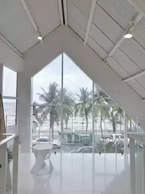 Artory cafe & crafts is a cafe located on the lower Bangsaen Road, on the Wonnapha Beach side. The view from the cafe is stunning, offering a stunning view of the Bangsaen Sea. The tall, white shop stands out prominently, with a clear sign. Drinks start at around 85 baht, though prices are a bit higher due to the location, style, and popularity of the shop. The cafe has two floors: the ground floor houses seating and a coffee-making area for the staff, while the upper floor has an attic with stunning sea views. However, you're only allowed to come up to take photos; you can't sit and enjoy coffee on this floor. Opening hours: 9:00 AM - 6:30 PM #WonnaphaBeachCafe #BangsaenCafe #BangsaenBeachCafe #VisitBangsaen