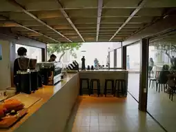 I've seen this place often on social media, and today I had the chance to stop by W Coffee House. The building is a two-story wooden house, converted into a coffee shop on the ground floor and a restaurant on the upper floor. The shop has a small air-conditioned area, but it's mostly open-air, as the main selling point is the sea. We went around noon, and it was quite hot. If we went in the evening, we could sit and enjoy a coffee while admiring the Bangsaen sea view. It would have been incredibly relaxing.