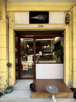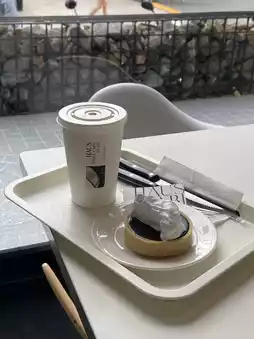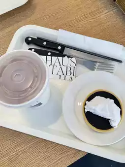 This small cafe has simple decor, with clean white and wood tones. They offer a wide selection of drinks and desserts. I really love their desserts. I ordered a chocolate tart. The desserts are served in a minimalist, minimalist style, and look amazing. They also taste delicious. For drinks, I ordered the peach tea, which was also quite refreshing. I think they recently started offering freshly fried churros. The choco crunch churros looked so delicious! I'll definitely try them next time I'm in Bangsaen!