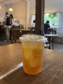 The cafe is neither small nor large, spanning two floors and offering a fair amount of seating. There are both indoor and outdoor seating options. The airy and comfortable space is inviting, perfect for relaxing and enjoying the chill atmosphere. The matcha here is delicious and rich, ceremonial-grade. The peach tea is also delicious and refreshing. For coffee lovers, the cafe also offers a wide selection of beans.