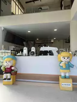 All Tea House (ออลที เฮ้าท์) is a charming tea shop located on Sukhumvit Road, Samet Subdistrict, Mueang Chonburi District. The shop features a cute decor with cartoon mascots at the entrance and several photo spots. Its glass wall structure allows a clear view of the interior from the outside. Inside, there is an air-conditioned seating area that is comfortable, though the seating on the second floor is limited, and accessing it may require walking around to the back stairs.