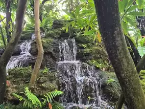 Waterfalls and stunning photo spots: A large, beautiful artificial waterfall serves as the centerpiece, creating a relaxing atmosphere and the soothing sound of flowing water. There are plenty of photo spots! Tree arches, wooden bridges, and green spaces provide stunning shots from every angle.