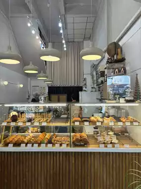 This warm, white-toned cafe welcomes you with the aroma of butter.