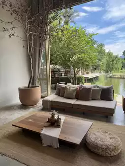 • Multiple reviews mention the "surrounded by mountains and lakes, feeling like being in Khao Yai" countryside atmosphere.