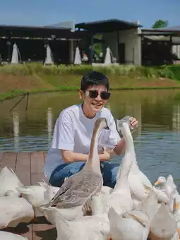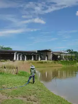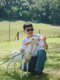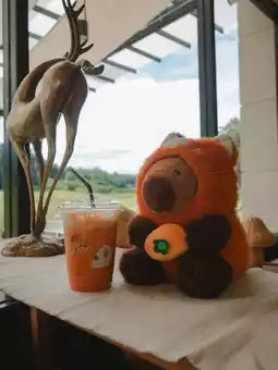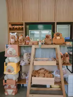 Cafe lovers will love this! This cute, newly opened Capybara-themed restaurant and cafe in the Nong Yai area of Chonburi offers indoor seating, both air-conditioned and decorated with capybaras, both large and small, and an outdoor area where you can relax by the water and enjoy the cool breeze. You'll also find baby ducks and goats to look at. Milk and food are available for you to feed them. And best of all, it's pet-friendly! I can tell you that you could stay here all day and take tons of photos and videos. We milked the goats and fed them, which was a real disaster, as they were incredibly naughty. The atmosphere here is wonderful, with the grassy fields, ducks, goats, and the lake view. It's a truly wonderful experience.