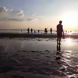 If anyone misses the sea near Bangkok, they probably can't escape Bangsaen, Pattaya, Cha-am. But today we will take you to see the sunset at Wonnapha Beach, Chonburi Province, a tourist attraction that has been with tourists for a long time. Wonnapha Beach has a highlight of having a lot of things to sell. There is an area to sit and relax. At night, people tend to come to buy food and sit and relax on the road in front of the beach. The atmosphere has become lively again. For anyone who wants to find delicious seafood, sit and talk, relax, I recommend this place, Wonnapha Beach. #Wonnapha Beach #Visit Chonburi
