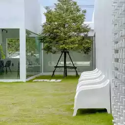 🌊Cafe Review: MATTER [Newly opened cafe in Bangsaen] Very minimalist feel. The shop has a white exterior tone, like a box but not stuffy🥤 The square shape contrasts with the green grass throughout the shop, giving a very fresh and airy feeling. The shop inside receives natural light 😍 The shop is located on Khao Lam Road, enter the alley of the box shop, next to Pulse Condo